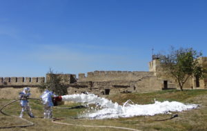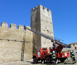 За пару дней до торжества в крепости состоялось церемония награждения лучших спасателей и показательная акция, на которой сотрудники пожарно-спасательной службы блеснули своим профессиональным мастерством. Мероприятие проходило недалеко от колонны пожарных машин, а также выставки снаряжения и обмундирования. Все это техническое великолепие эффектно смотрелись на фоне зубчатой стены из ракушечника, щедро обливаемой осенним солнечным светом.
