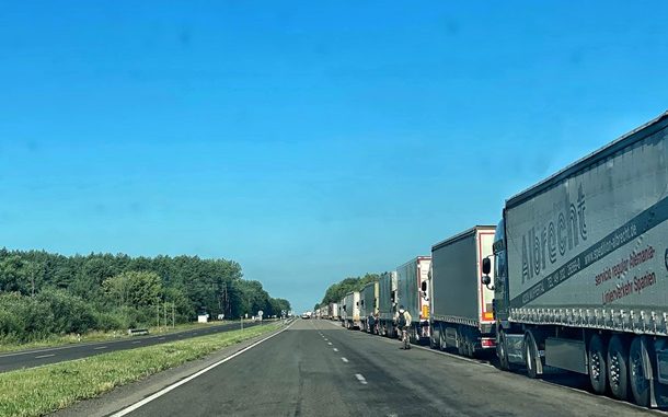 Середня довжина черги тут збільшилася майже в кілька разів порівняно з попереднім тижнем — з 1,2 до 15 км на добу. Нині це понад 1150 транспортних засобів. Періодами черга сягає 23 км», — зазначив він.