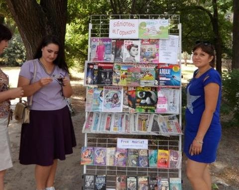 Всі бажаючі мали змогу познайомитись з періодичними надходженнями бібліотеки, а також переглянути та скористатися «Книжковим free market» (вільним обміном книгами). Перехожі дізналися про послуги та можливості бібліотеки, її ресурси. Кожен одержав візитівку бібліотеки, а декілька молодих людей стали новими користувачами бібліотеки ім. М. Горького.