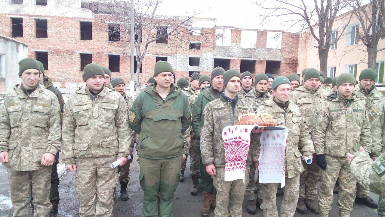Захисників України — військовослужбовців ІІІ гарматної артилерійської батареї в/ч А — 4217, що прибули із виконання завдань за призначенням на Сході України, зустріли урочисто.