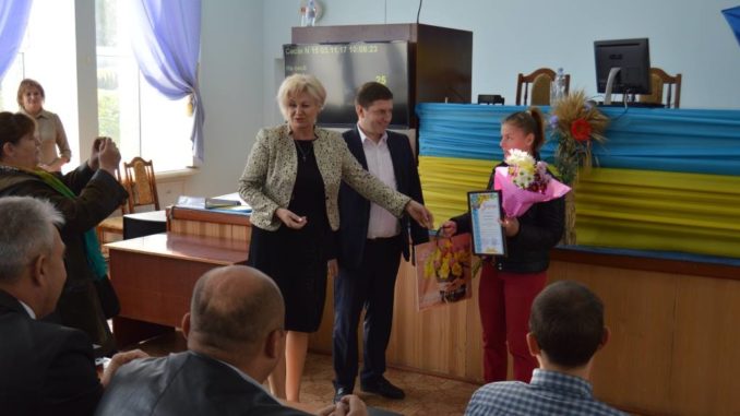 Керівники органів влади нагородили грамотою спортсменку із с. Адамівка Вероніку Тімошину за перемогу в змаганнях з кікбоксингу.