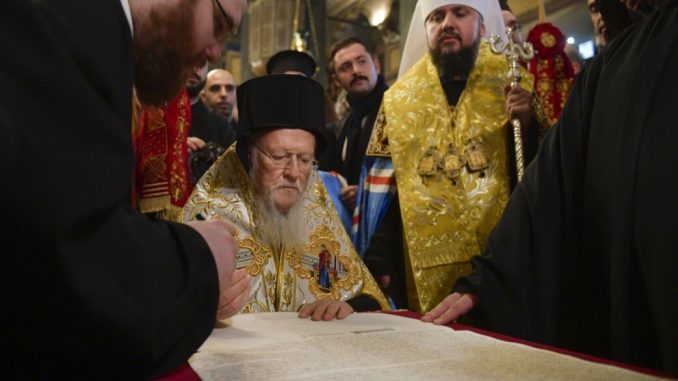 «Набожный украинский народ ждал этого благословенного дня целых семь веков», — заявил патриарх Варфоломей после подписания.